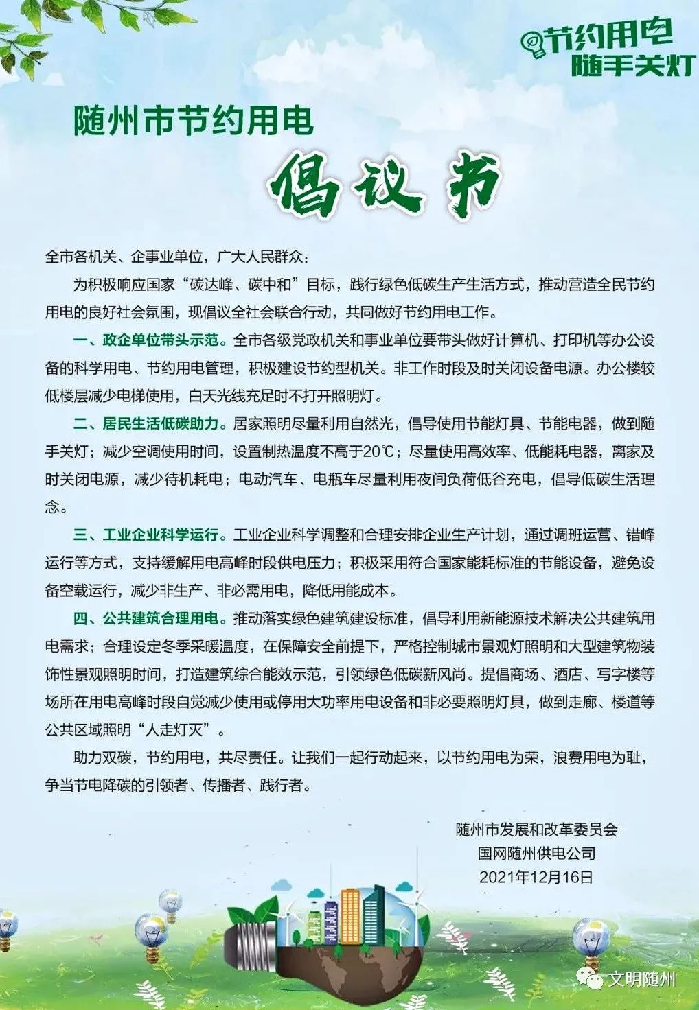 营造全民节约用电的良好社会氛围