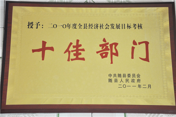 被评为十佳部门