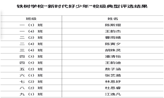 | 随州文明网讯 (通讯员杨丽)5月27日,曾都区铁树学校组织开展的“新时代好少年”评选活动落下帷幕。 评选前,学校精心制订评选方案。评选标准为孝老爱亲、尊敬师长、热爱劳动、勤俭节约、团结友爱五大块,评选方式为个人自荐、班级推选、学校评选相结合。每个班评出2位“新时代好少年”,作为年级典型,参与校级的评选。 |