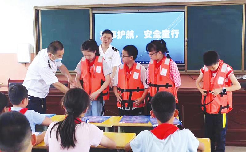 6月2日,广水市地方海事处工作人员来到长岭镇港昌学校,开展水上知识进校园宣传活动。工作人员通过提问抢答、发放安全知识宣传单等形式,详细介绍了乘船出行的注意事项以及遇险救助、溺水自救等水上交通安全知识,并现场指导学生正确穿戴救生衣,模拟落水后自救,使同学们掌握防溺水急救常识和自救技能。