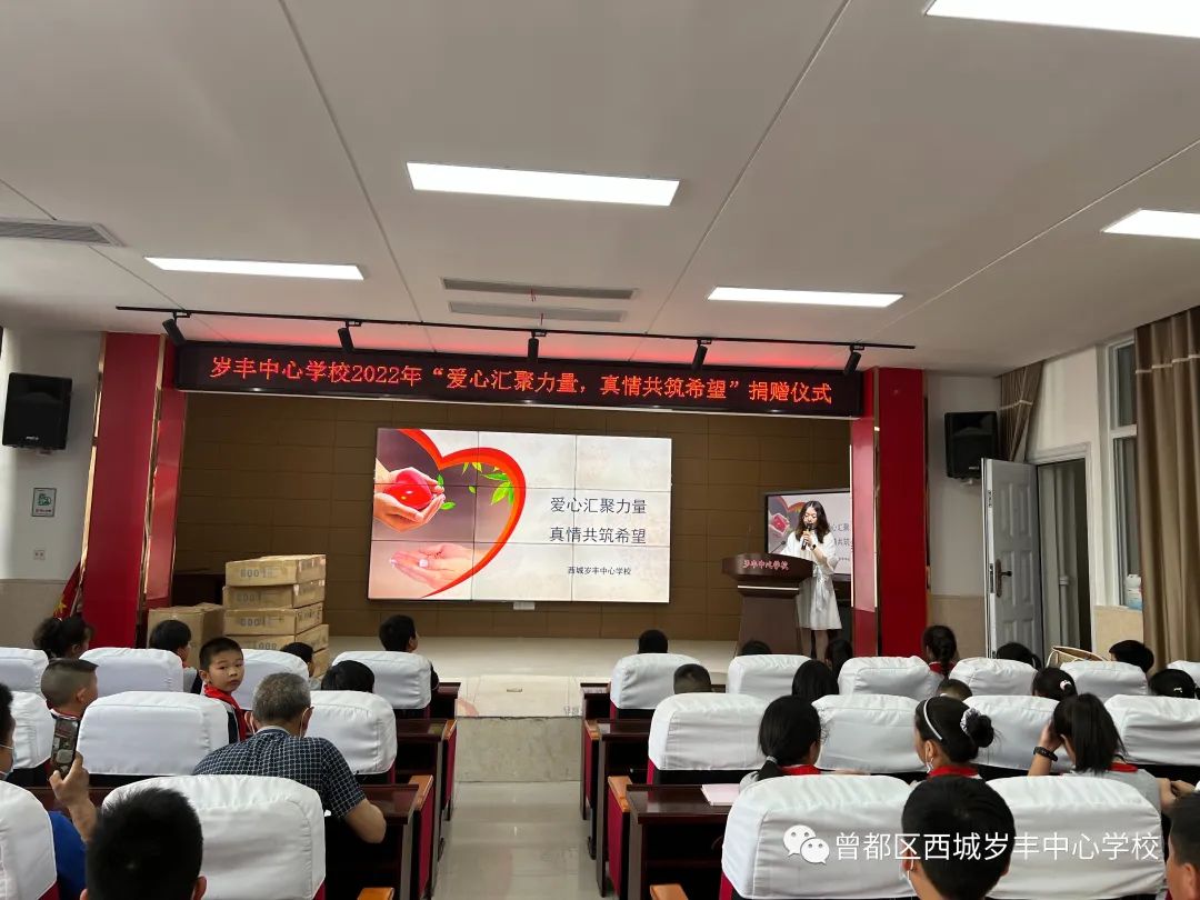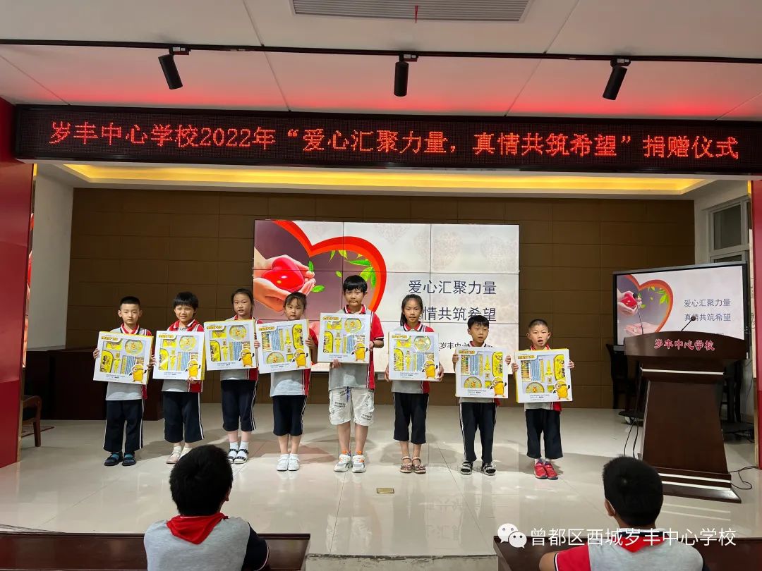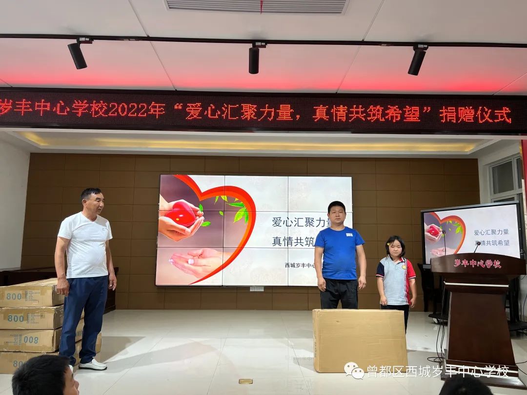 爱心汇聚力量,真情共筑希望 ——西城岁丰中心学校举行爱心捐赠仪式 青少年是祖国的未来,关注青少年的发展就是为祖国的未来保驾护航。岁丰中心学校一直致力于青少年的健康成长事业,为青少年营造良好的学习环境,使其无忧无虑地成长!2022年6月6日,岁丰中心学校举行了一场捐赠仪式。由团区委、区总工会、区妇联、区工商联、区红十字会联合开展的“一灯一桌椅,点亮书香梦——为困境青少年圆梦微心愿”活动中,学校五名学生接受了桌椅捐赠。 共青团曾都区委为我校留守儿童捐赠学习用品、体育用品20套。 长长帮扶路,绵绵手足情,爱心无止尽,助学见真情。岁丰中心学校今后将继续联系社会各界积极开展有益青少年成长的活动,大力实施帮扶困境青少年就学的行动,培养好社会主义接班人,为祖国的发展积蓄后备力量! 来源:岁丰中心学校 |
