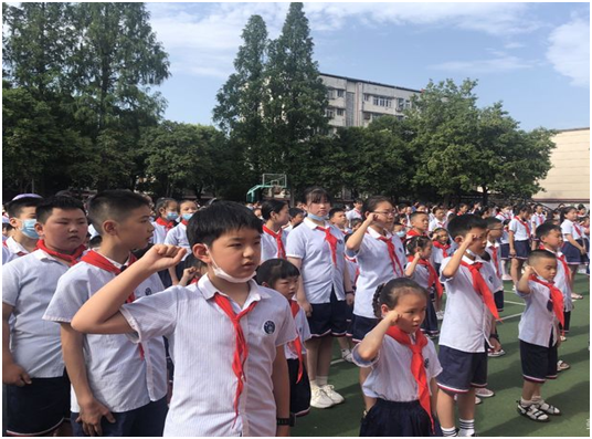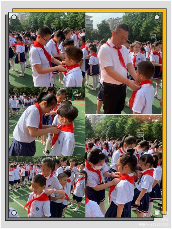 喜迎二十大 争做好队员 ——曾都区实验小学举行新队员入队仪式 随州论坛讯 (通讯员蒋春艳 孙海林)6月7日上午,曾都区实验小学大操场上,队旗飘飘,队歌嘹亮,在学校政教处、大队部的认真筹备和精心组织下,一年级第一批新队员入队仪式在庄重热烈的气氛中隆重举行。本次入队仪式,共有159名同学光荣加入了中国少年先锋队,成为了少先队组织的新生力量。“第一项:出旗”伴随着熟悉的出旗曲,旗手高举队旗,神抖擞地进行着庄严的出旗仪式。嘹亮的队歌响起,队员们齐声高唱“我们是共产主义接班人”表达着他们对少先队组织的热爱。 仪式中, 大队辅导员和大队委分别宣读了组建一年级少先队组织的决定和一年级第一批新入队队员名单。在《红领巾飘起来》的音乐声中,老队员为新队员戴上鲜艳的红领巾,并互敬队礼。一年级159名同学正式加入中国少年先锋队,光荣的成为组织的一员。新、老队员代表分别发言完毕后,队员们在大队委、辅导员的带领下庄严宣誓,他们用坚定的声音,自信地表达着“请党放心,强国有我”的信念和努力学习、奋发向上的决心! 大队委为各新建中队授中队旗;学校校长、少工委主任邓世兵同志为新任辅导员颁发聘书。学校副校长、少工委副主任谌江波同志,为新队员送上祝福并勉励他们热爱祖国、热爱集体、刻苦学习、健康快乐成长,实现自己心中的梦想。辅导员带领队员们呼号完毕进行退旗仪式。 少年有志气,国家有未来,胸前飘扬的红领巾激励队员们不断进步,加入光荣的队组织,队员们迈开了人生成长的新步伐! |