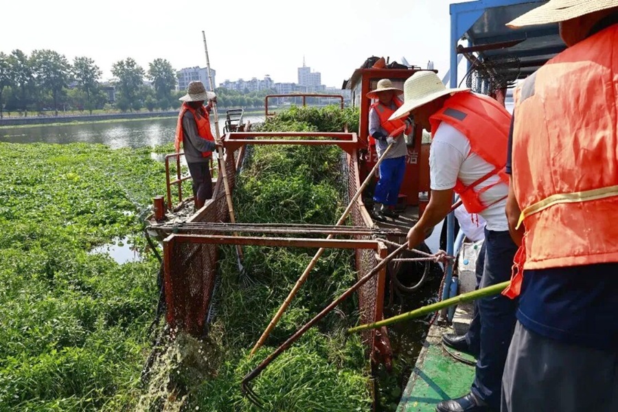 今年8月上旬以来,受持续高温及上游汛期影响,大量水葫芦涌入白云湖开阔水域,形成连片“绿毯”。为恢复湖面清澈、守护碧水清流,曾都区城管执法局迅速开展专项清理行动。
