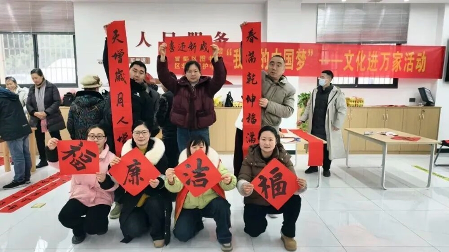 新春将至 年味渐浓 连日来 曾都区群众艺术馆书法志愿者队伍 穿梭于各街道、社区、村组 为市民写春联 送祝福 在南郊街道长岭岗村 红纸铺展、墨香四溢 书法老师们凝神挥毫、笔走龙蛇 行楷隶篆各显神韵 贴合新年的吉祥联语跃然纸上 满含对岁首新程的美好期许 在曾都经济开发区余家老湾村 西城街道飞来土社区 处处洋溢着热闹喜庆的氛围 志愿者们挥毫创作 不一会儿 桌上、墙上就放满了 红彤彤的春联与福字 “现在买春联方便 但大家就爱这手写的劲儿 看着墨汁一点点晕开 这才是年味!” 拿到春联的老人笑着说 活动现场同步设置非遗文化讲解环节 让大家在感受墨香年味的同时 近距离接触中华优秀传统文化 作为曾都区群艺馆 深耕十五年的文化惠民品牌 “我们的中国梦——文化进万家”活动 将继续带着墨香与祝福 走进更多街道、社区、村组 把接地气、有温度的文化服务 送到基层一线 让新春的暖意与文化的馨香 浸润曾都大地 |