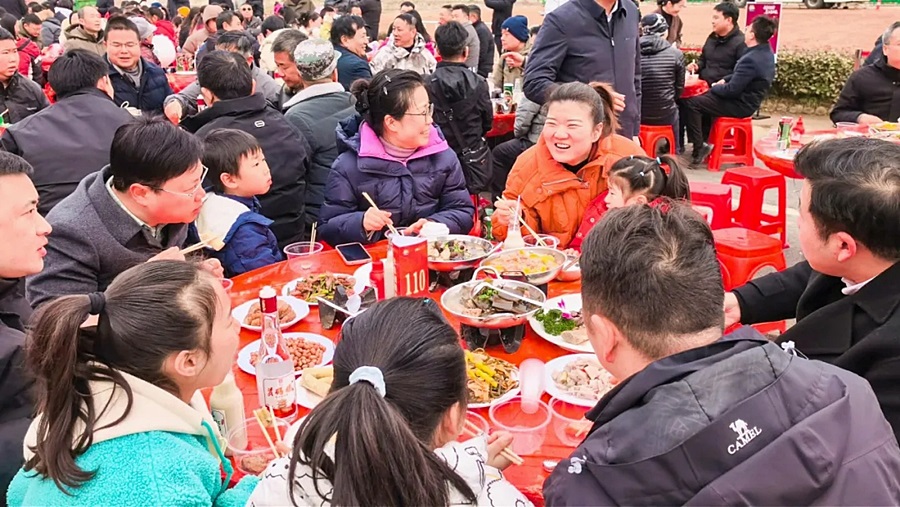 锣鼓敲起来 狮子舞起来··· 腊月二十的银杏谷 年味浓得化不开! 2月7日,“长桌庆瑞雪、马上杏福来”第二届春节文化活动,在银杏谷旅游度假区火热开场。冬日暖阳下,共品佳肴、共话家常。 传统年俗表演舞狮子、采莲船一上场,就引来满堂彩;猜灯谜、飞花令······大朋友小朋友都抢着参与;随州本土音乐人一曲《炎帝故乡》,唱得在场乡亲们心头暖洋洋。 最让人期待的,莫过于那场声势浩大的“团年宴”。中午时分,鼓声震天,彩烟腾空,桌上摆满了地道的随州年味:曾侯乙蒸牛肉、泡泡青、三鲜、非遗喜饼麻花……大家围坐一堂,举杯共饮,那场面,别提多温暖了! “这比在酒店吃饭有感觉多了!”特意带着家人赶来的陈先生边吃边感叹,“有表演看,有游戏玩,饭菜也香,这才是过年该有的热闹劲儿!” “没想到这么热闹!舞狮子、猜灯谜,还有这么多特色表演,感觉一下子回到了小时候过年。”游客陈巧巧正在排队兑换奖品,她告诉记者她集齐了四枚印章,想兑换银杏胸针。 活动现场,最欢乐的莫过于孩子们。 在猜灯谜环节踊跃举手、在《渔翁争霸》表演前目不转睛的小朋友王钲淇兴奋地告诉记者:“我最喜欢那个‘毛驴’表演,好有趣!我还猜中了一个灯谜,拿到了小奖品呢!” 下午两点,不少游客离场时仍意犹未尽,相约来年再聚。 |