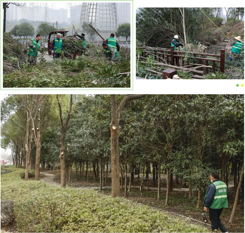 连日来,文化公园调集人员车辆,在高新区大美园林公司的协助下,对公园周边及园区内的树木进行修剪整理,全力打造疏密适度、视野通透、层次分明的绿化景观效果,让市民的游园体验更加舒适。 按照“内外兼修、视觉通透、层次丰富”的目标,此次修剪作业侧重公园环湖林带、景观通道、主要景点周边等区域和点位,对长势过高过密且影响视线的树(苗)木进行截干、树冠压缩等作业,移植过于密集的树木。 通过以上举措,合理控制植株高度,丰富树木高低层次,改善林带通风采光,有效拓宽游园视野,着力营造视野通透、和谐美观的公园环境。 此次修剪作业涉及夹竹桃、紫薇、紫穗槐、桂花等树木种类,修剪总量 2 万余株,目前已完成大半,整个修剪作业预计3月下旬结束。 |