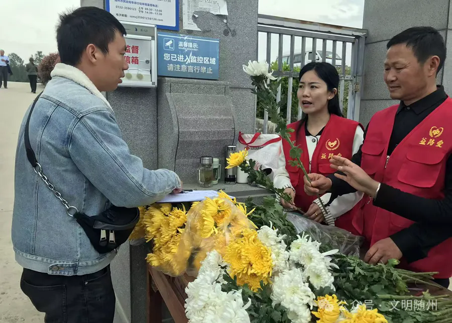 清明节期间,随州益路爱社会工作服务中心开展“移风易俗树新风”主题活动。 4月2日,在随州高新区丁字沟公墓,随州益路爱社会工作服务中心社工和志愿者一大早就忙碌起来,他们精心准备了3000支黄白两色新鲜的菊花,在公墓入口处设置了“鲜花换纸钱”兑换点。过往祭扫的群众纷纷被这一新颖的形式所吸引,不少人主动拿出携带的纸钱、飘子等传统祭祀用品,兑换工作人员手中的鲜花。 一位前来祭扫的市民感慨地说:“以前清明烧纸钱,既不环保又有安全隐患。现在用鲜花祭扫,既表达了对先人的追思,又保护了环境,这样的活动很有现实意义。”工作人员还耐心地向群众宣传文明祭扫的理念,倡导大家摒弃焚香烧纸、燃放鞭炮等传统祭祀陋习,采用鲜花祭扫、网络祭扫等绿色、环保、文明的方式来缅怀先人。据统计,活动当天共兑换纸钱、飘子等祭祀用品1400多份,越来越多的群众开始接受并践行文明祭扫的新方式。 益路爱负责人表示,此次清明节移风易俗活动是中心推动文明新风建设的重要举措之一,在市民政局支持下,益路爱机构购买了鲜花,在活动中免费发放给参与兑换的群众,目的是通过纸钱、冥币换鲜花,传递文明新风,同时减轻村社森林防火压力,倡导绿色祭扫,让文明祭祀成为一种自觉行动,通过志愿服务,让清明更“清明”,让我们的传统节日焕发出更加璀璨的文明光彩。 |