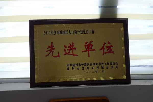 荣获2011年度西城辖区人口和计划生育工作先进单位奖牌