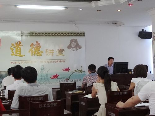 ---广水市质监局开展“道德讲堂”活动 为深入开展文明单位创建活动,提升干部职工的思想素质。7月28日下午,广水市质监局组织干部职工开展了 “道德讲堂”活动。副局长刘家美以《坚守道德底线,做一个低调的人》为主题,从省自己、唱道德歌、学模范、诵经典、谈感悟、崇德礼、送吉祥、做善事八个环节进行了讲授,以“身边人讲身边事、身边事教身边人”为基本形式,重点讲述大家看得见、学得到的模范左光满的先进事迹,并结合历史从古至今以生动事例讲述了社会公德、职业道德、家庭美德和个人品德,通过看得见、学得到的“平民英雄”和“凡人善举”,宣扬助人为乐、见义勇为、诚实守信、敬业奉献和孝老爱亲的道德品质。整个活动持续了2个多小时,为广水市质监系统奉献了一份丰盛的“文化道德”大餐,进一步丰富了党的群教实践活动 “回头看”系列的内容,进一步促进了“群众满意服务窗口”创建活动。 道德是中华瑰宝,是文明之光。数千年来,一直激励华夏儿女砥砺奋进。通过树立道德标杆弘扬正能量,激发质监人投身道德实践的热情。让全局干部职工洗涤心灵,感悟道德,争做道德文明的传播者、实践者和受益者。大家纷纷表示,道德讲堂是提升社会正能量的重要平台,模范人物身上闪烁着最真实的人性光辉。今后要以他们为榜样,勤恳工作,争做一名合格的质监卫士。 局长程登全强调,道德讲堂就是“埋好芽、浇足水、除杂草”的净地,开办“道德讲堂”是该局今年部署的一项重要工作,今后将每月一讲,持续推出系列教育活动,组织干部职工广泛参与,深入学习身边模范,更好地投身工作,引导全体干部职工争做道德的传播者和践行者,让“道德讲堂”成为加强全系统精神文明建设的主阵地,为广水市质监事业的发展提供强大的精神动力,让单位文明创建再上新的台阶。 |