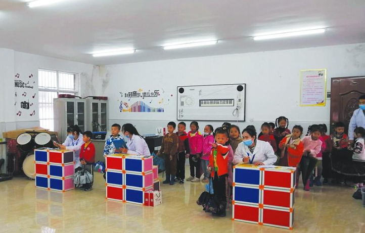 疫情期间上网课,电子产品难离身,学生近视向低龄化发展。9月22日上午,广水市十里中心小学对全校学生进行视力检查,为学生建立眼健康档案,宣传视力健康科普知识,培养良好用眼习惯。 (随州日报通讯员张婷、王芳摄)