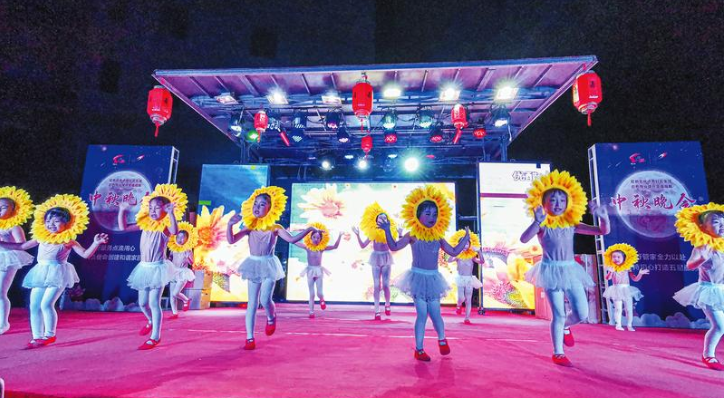 丹桂飘香、秋风送爽。中秋、国庆双节即将来临,为使小区的业主们感受到邻里间的暖意与温馨,拉近彼此的距离,感受浓烈的节日氛围,9月26日晚,随州碧桂园风光社区张灯结彩,业主们自编自导上演了一台以“红色点亮社区生活红色物业提升幸福指数”为主题的庆中秋迎国庆联欢晚会,小区居民自编自演自导歌舞、豫剧、古乐弹唱等丰富多彩的文艺节目,在热闹欢乐的气氛中喜庆中秋、国庆佳节。 (随州日报全媒记者李文军摄) |