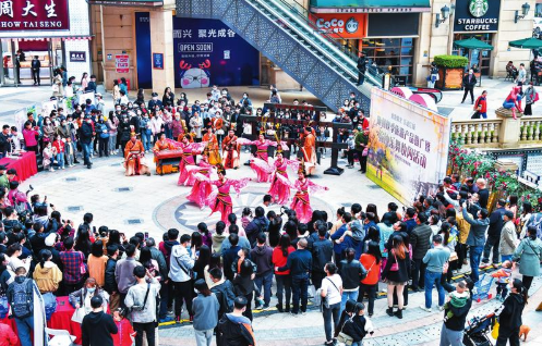 随州日报讯(全媒记者陈云)10月17日,我市组织赴汉开展“惠游湖北乐动江城”编钟乐舞快闪巡演。古老神秘的编钟乐舞走进繁华闹市、市民身边,古典与现代的碰撞之美,让现场围观群众深深记住了随州,进一步提升了随州城市的知名度和美誉度。 首场巡演在武汉音乐学院举行。活动现场,当缩小版的“曾侯乙编钟”组装完成,该学院的学子们纷纷上前尝试敲响这一古老的打击乐器。随州博物馆编钟乐团人员现场讲解国宝曾侯乙编钟的传奇经历、发声原理、珍贵价值等,并现场演绎编钟乐舞。下午,编钟乐舞快闪巡演来到武汉年轻人聚集地光谷步行街。当悠扬灵动的编钟古乐在人来人往的繁华街头敲响,古典与现代的碰撞、空灵与闹市的映衬,让随州的编钟乐舞成功吸睛,成了光谷步行街全场最受瞩目的秀。现场围满了市民群众,大家纷纷举起手机拍照录像。 此次活动由市文化和旅游局主办。