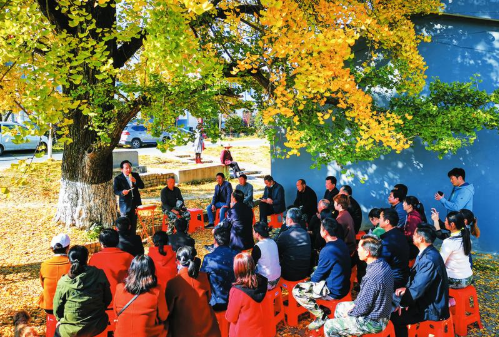 11月13日,曾都区洛阳九口堰革命纪念馆馆长顾世国用随南鼓乐说唱的方式向村民宣讲十九届五中全会精神。他将五中全会精神编成鼓乐唱词,不仅朗朗上口,而且通俗易懂,很受村民喜欢。(随州日报全媒记者李文军摄)