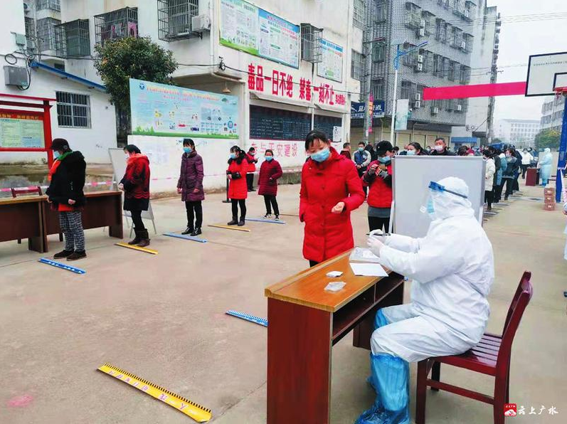 12月9日,广水市李店镇整合社区、卫生院、派出所等单位力量,联合开展新冠肺炎病毒全员核酸检测应急演练活动。图为实战演练现场。(随州日报通讯员程淇、陈乐摄)