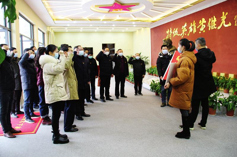 12月17日,广水市医保局和广水市移动分公司党支部30余名党员来到驻广空降兵某部,走进“黄继光英雄连”,开展主题党日活动,缅怀先烈、接受洗礼。(随州日报通讯员李斌、左秋莉摄)