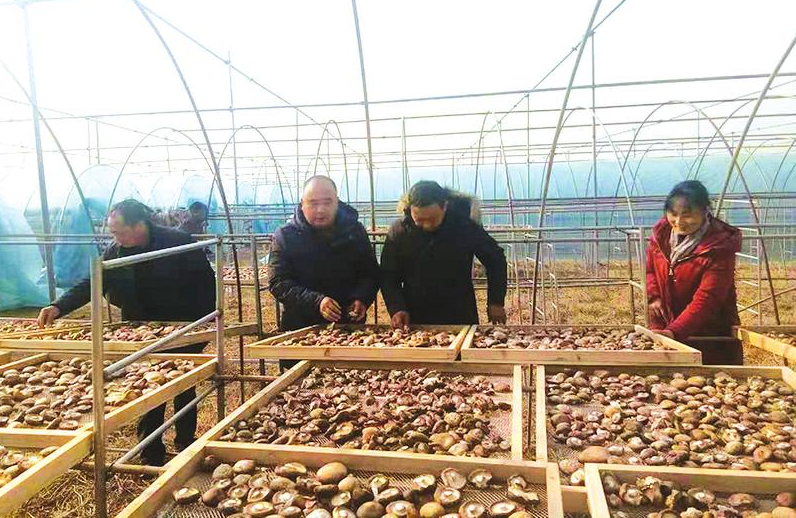 为助力村级集体经济发展,随县唐县镇财政所整合资金30万元,支持肖家畈村发展香菇产业。图为财政专管员到该村香菇种植基地现场了解香菇生产销售情况。(随州日报通讯员邓育玲摄)