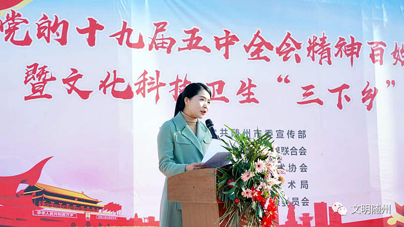 给父老乡亲置办“精神年货” 党的十九届五中全会精神“百姓宣讲” 暨文化科技卫生“三下乡” 2021年1月8日,党的十九届五中全会精神百姓宣讲暨文化科技卫生“三下乡”活动走进随县新街镇水寨村,群众在家门口接收喜欢听、听得懂的五中全会精神“百姓宣讲”,并愉块地收获送到身边的文化科技卫生。 百姓宣讲团成员刘鑫以“增强文化自信、建设文化祖国”为题,围绕 “十四五”时期发展目标、全面推进乡村振兴等内容,用通俗语言解释理念,用鲜活事例来阐释政策;同上舞台的还有诗歌朗诵五中全会精神、有奖问答五中全会精神,丰富的“百姓宣讲”形式伴随着穿插的红歌、舞蹈等精彩文艺节目,赢得了父老乡亲的阵阵掌声。舞台旁侧,赠送年历、书写春联、画年画、科技咨询、医疗义诊等活动同时进行,父老乡亲们在家门口置办着“精神年货”。 ▲书画家为随县新街镇水寨村的父老乡亲绘制“花开富贵” ▲书法家为随县新街镇水寨村的父老乡亲书写春联 ▲医疗专家为随县新街镇水寨村的父老乡亲义诊 党的十九届五中全会精神“百姓宣讲”暨文化科技卫生“三下乡”活动,由随州市委宣传部、随州市文学艺术界联合会、随州市科学技术协会、随州市科学技术局、随州市卫生健康委员会主办,邀请了书法家、画家、科技专家、医疗专家、文艺工作者等献技献艺,将热热闹闹的“精神集市”送到随州各地父老乡亲家门口。 ▲随州市委宣传部宣教科长张玉在曾都区何店镇桂华村宣讲党的十九届五中全会精神 ▲广水市委市委党校一级主任科员朱联映在曾都区何店镇桂华村宣讲党的十九届五中全会精神 ▲业余文艺工作者朗诵《读五中全会公报》 ▲业余文艺工作者表演舞蹈《盛世芳华》 ▲广水市马坪镇的父老乡亲收看宣讲活动 此前,该活动2020年12月24日走进曾都区何店镇桂华村、2020年 12月31日走进广水市马坪镇詹王广场,都收获了良好的社会反响。 |