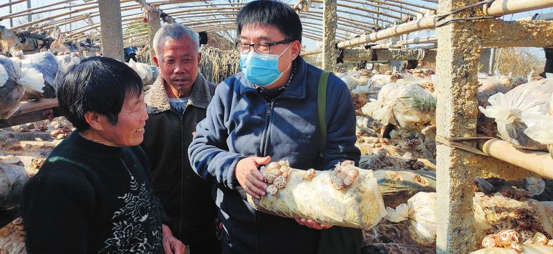 春节假期刚过,工行随州分行驻曾都区万店镇粉铺村扶贫队员谢强(右)立即到脱贫户家中,帮忙开展春季生产,巩固脱贫成果。(随州日报通讯员龚萱摄)