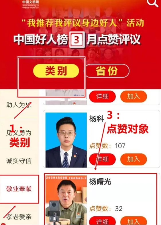 网上“我推荐我评议身边好人”活动 2021年3月点赞评议 开始啦! 中共党员,国网随州供电公司 驻广水市太平镇猫子湖村第一书记 杨曙光,光荣上榜! 欢迎广大网友 为他点赞和留言 网上“我推荐我评议身边好人”活动,由中央文明办依托中国文明网开展,定期发布“中国好人榜”,旨在发现身边的凡人善举、平民英雄。 点赞方法 1 识别下方二维码 进入投票页面 2 1:点击“类别”选项后,下滑选择“敬业奉献”,下滑找到被点赞人“杨曙光”,“加入”到点赞库; 2:将您要的候选加入到点赞库后,点击右下角“点赞”键,确定您要点赞的对象; 3:点击“点赞评议”,即点赞评议成功。 3 你也可关注“文明随州” |