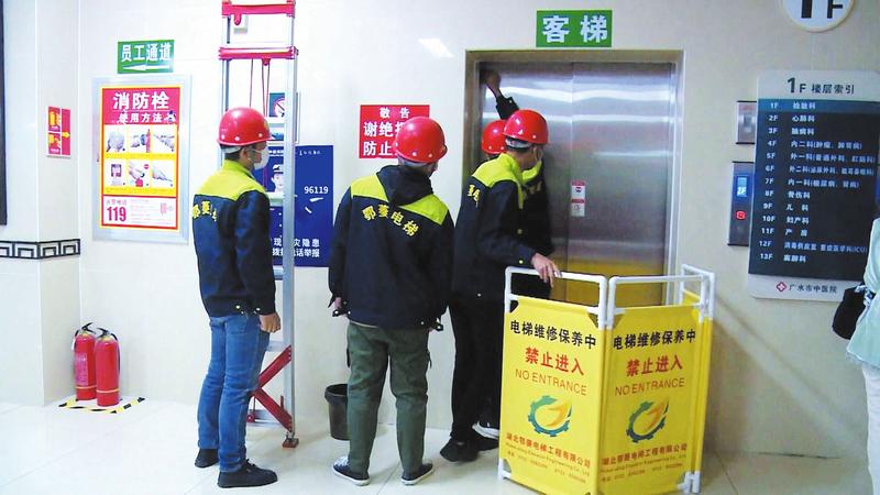 近日,广水市市场监督管理局和湖北鄂菱电梯工程有限公司来到广水市中医院,联合开展电梯应急救援演练活动。演练内容包含乘客拨打急救电话、医院启动应急救援预案、安抚被困人员情绪,维保公司排查电梯故障、解救被困人员等,整个过程历时约40分钟。(随州日报特约记者温文雅、通讯员冯青摄)