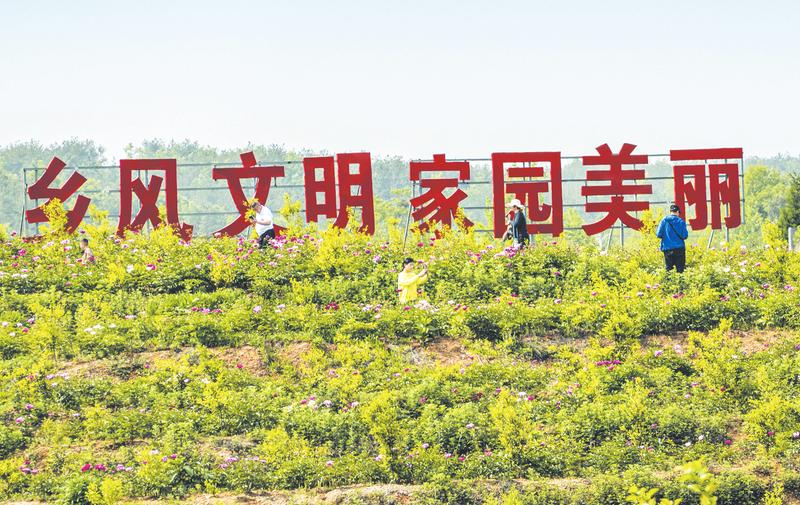 | 随县澴潭镇柏树湾村地处黑屋湾水库边,这里依山傍水,山清水秀。近年来,该村通过美丽乡村建设,对传统农田、自然村庄进行改造升级,因地制宜把万亩坡岗地建设成集循环农业、创意农业、旅游观光农业于一体的田园综合体示范基地,吸引了四面八方的游客前来赏花踏青。图为4月19日,柏树湾村千亩芍药花绽放,不少游客前去赏花拍照。 (随州日报全媒记者李文军摄) |