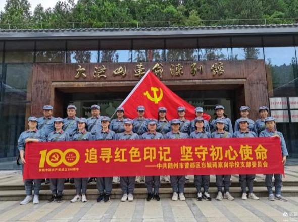 | 在中国共产党成立100周年到来之际,东城蒋家岗学校为了坚定党员的理想信念、加强党员的党性修养,组织全体党员干部及入党申请人到大洪山红色教育基地,开展以“追寻红色印记,坚守初心使命”为主题的教育活动,真正做到学党史、颂党恩、跟党走,为建党100周年献礼! 2021年6月29日8:00,在东城蒋家岗学校支部委员会的带领下,学校的17名党员和5名入党申请人,一起前往大洪山红色教育基地。 一路前行,热情高涨,倾情演绎,接力唱响红色革命歌曲,其中张玉梅老师领唱了《我和我的祖国》、《唱支山歌给党听》,刘峰老师领唱了《我的中国心》,还有李慧媛、李婷婷等等老师的倾情演唱,将我们的红色之旅氛围推向高潮。 伴随着一路上的欢歌笑语,大家到达了大洪山红色教育基地,经过简单的休整换装之后,个个都成了英姿飒爽的红军战士。 在教官的带领下,大家迅速集合整队,并学习了立正、稍息、敬礼、向左向右转、齐步走等基本动作。 队伍训练完毕之后,一行人来到了位于山顶的大洪山革命陈列馆,并举行了庄严的升旗仪式和入党宣誓,铿锵的誓词,大家热血沸腾,仿佛重回当初加入党组织的那一刻,更加坚定了自己的理想信念。 庄严肃穆的升旗仪式和入党宣誓结束后,大家一起参观学习了大洪山革命陈列馆,一幅幅弥足珍贵的资料图片、一段段艰苦卓绝的革命历史、一个个场景逼真的实物展示,带领大家沿着历史的足迹,翻开红色的记忆,感受那段硝烟弥漫的革命岁月。 通过讲解员的解说,大家进一步了解了革命先烈为中华民族解放所作的丰功伟绩,感受到革命先辈们浴血奋战,不怕牺牲的英雄气概。参观完陈列馆之后大家来到红军食堂,自己动手做饭,亲身体验红军当年艰苦的革命生活。 红军不怕远征难,万水千山只等闲,大家在教官的带领下,重走红军路,沿着当年革命先烈的战斗足迹,用脚步丈量历史,用歌声激扬斗志,身心感悟,更加坚定政治站位。 下午大家在会场回顾了一天的学习活动,党员代表向婕同志、刘峰同志、方琬莹同志,以及入党申请人李慧媛同志分享了自己的学习心得,感悟到老一辈革命先烈艰苦奋斗的优良作风和不屈不挠的斗争精神,体会到现在生活的来之不易。 活动最后,支部委员邹辅华同志发言:希望全体党员同志能牢记全心全意为人民服务的宗旨,发挥模范带头作用,坚定党员理想信念,以集体荣誉为上,不计个人得失,内修自省,尽心履职,为党的教育事业做出应有的贡献。 |