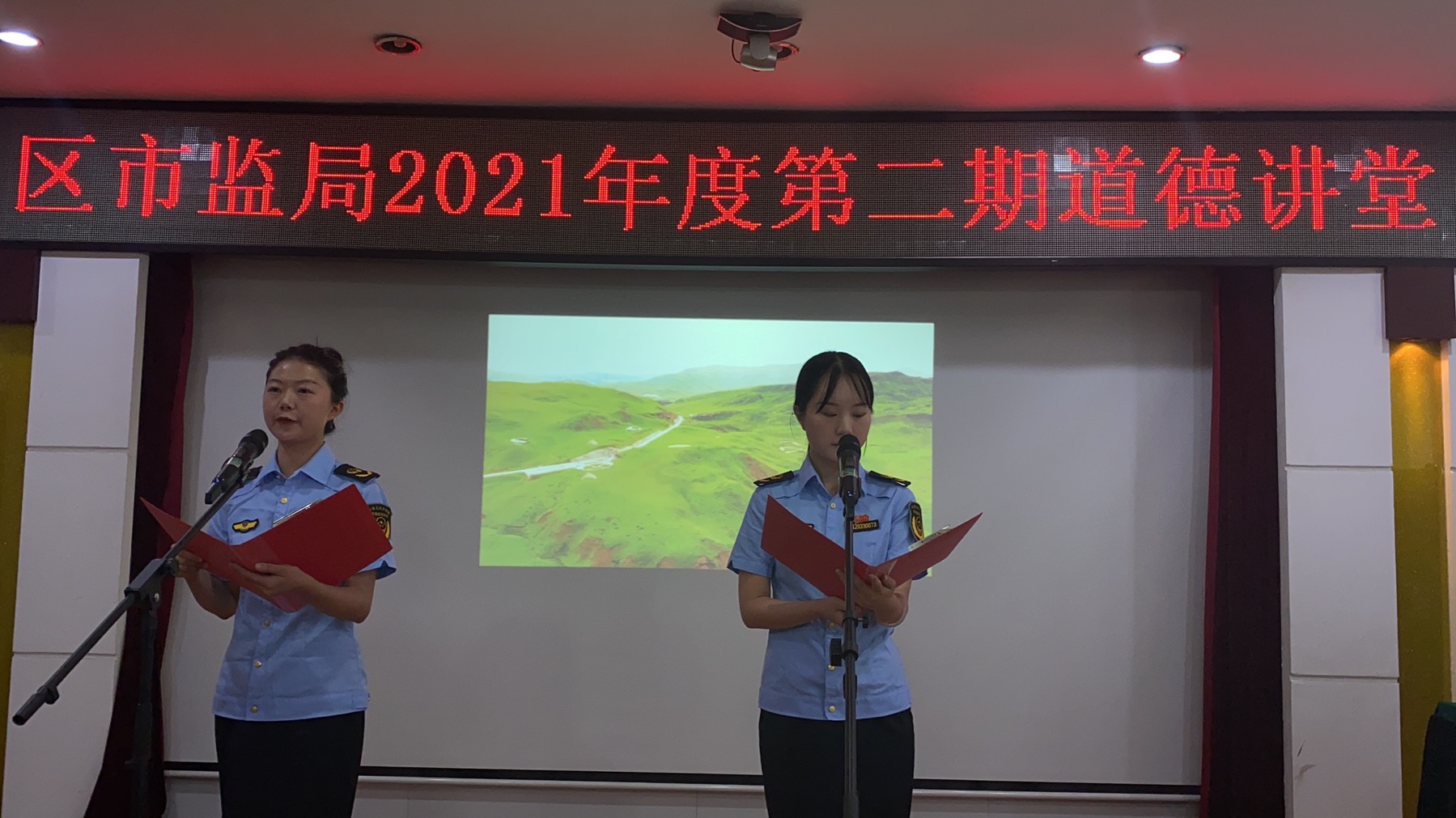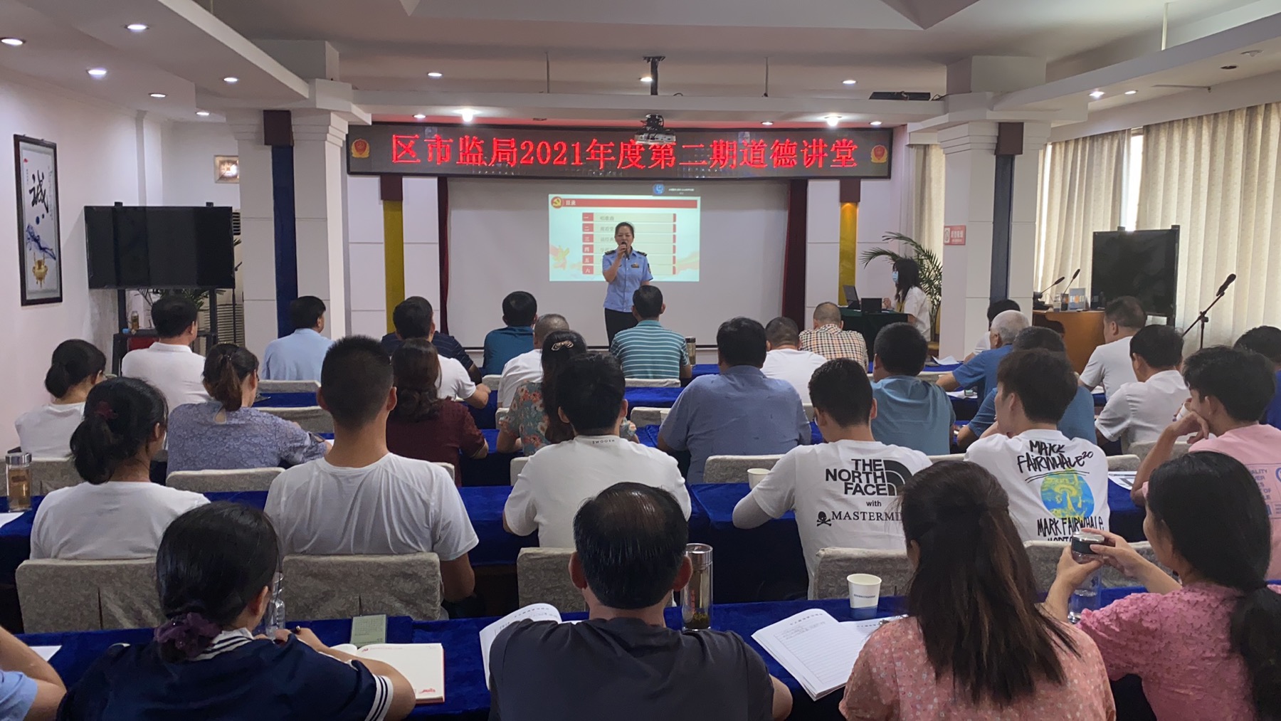 | 随州文明网讯 (通讯员陈会)7月27日下午,曾都区市场监管局举办以“永远跟党走 奋进新征程”为主题的道德讲堂活动,巩固精神文明建设成果,推进党史学习教育深入开展。局机关全体工作人员、综合执法大队和城区各监管所班子成员以及本系统先进模范代表参加。 此次道德讲堂活动,分为唱歌曲、观看党史教育片、诵经典篇章、学模范、谈感悟、送吉祥六个环节依次进行。大合唱《没有共产党就没有新中国》拉开了活动的序幕;观看了视频《中国共产党百年述职报告》,感受党的百年成长史,铭记奋斗历程,从中汲取担当奋进的力量;青年干部们分别朗诵了《丹心党旗》《水调歌头 游泳》《可爱的中国》等诗歌,优美的诗句,深刻的哲理,带给与会人员的是一份感动,一份感召,一份强大的精神力量;观看了感动中国人物马旭、随州市曾都医院护士岳子琪等4位身边的模范的先进事迹。 与会党员干部纷纷发表了自己的感悟。曾都区市场监管局团支部书记郭娇表示,“青年干部要在党史学习教育中更加热爱祖国,要学习先进模范们勇于担当的精神,用真才实学为人民服务,践行青年使命。”全国市场监管系统抗疫先进个人朱云霞表示,“英雄来自人民、植根人民,他们的事迹可学可做,他们的精神可追可及。”来自东城市监所的刘荣臻表示,“回望党的百年历史,市场监管人要从中汲取坚守信念、担当作为的力量,要旗帜鲜明讲政治,牢记初心使命,以昂扬的姿态,持之以恒解决群众急难愁盼的问题,做有温度的市场监管人。” 活动最后,工作人员为大家赠送了建党一百周年纪念章。局党组副书记、副局长鲍丹表示,本次活动,旨在用实际行动向党献礼,教育广大党员干部永远听党话,跟党走,争做新时代好党员!引导曾都市场监管人以更加坚定的信仰、更加昂扬的斗志、更加务实的作风,投入到加快建设专汽之都核心区、现代农港引领区、城乡融合样板区、社会治理示范区建设中去,为曾都高质量发展贡献力量。 |